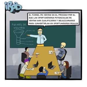 El Funnel de ventas, es el proceso por el cual las oportunidades potenciales de ventas son cualificadas y seleccionadas para convertirlas en oportunidades reales interpretado