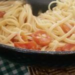 Ingredientes: Pasta (unos 150 gr por persona) Tomates cherry (400 gr) Albahaca fresca Aceite de oliva extra virgen Ajo (2 dientes de ajo) Cayenas, dependiendo